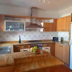 Konuklar tam donanımlı mutfakta yemek yapabilirler. Bahçe manzaralı teras da vardır.